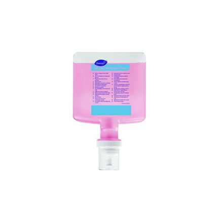 Soft Care All Purpose er en skumsæbe med en frisk blomsterduft, der giver en behagelig aroma, til brug på badeværelser.